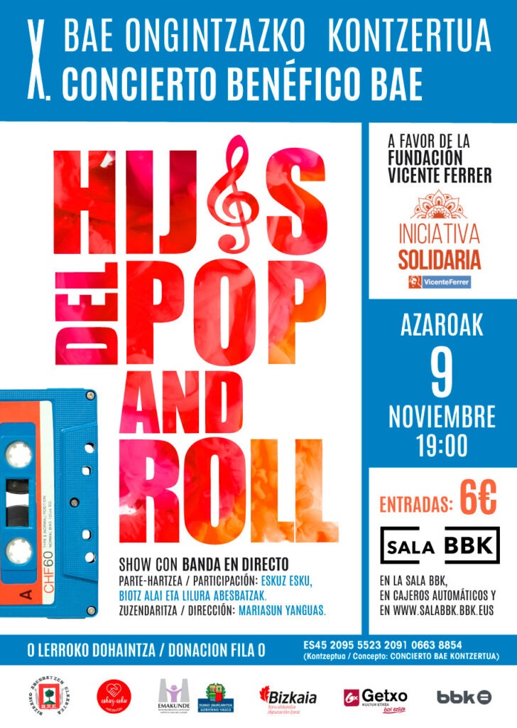 Oraingo honetan, VICENTE FERRER FUNDAZIOAK jasoko du diru guztia. Getxoko hiru abesbatzek (Eskuz-Esku, Lilura eta Biotz Alai), Mª Asun Yanguasen zuzendaritzapean, bakarlariekin eta zazpi musikariz osatutako banda batekin batera, “HIJAS DEL POP AND ROLL” kontzertu-ikuskizuna aurkezten digute, 80/90eko hamarkadako pop-rock pieza eta artistei omenaldia egiten diena, abesbatzen moldaketa ezezagunekin, % 100 zuzeneko musika eta ahotsekin, eta kantu bakoitzari egokitutako koreografiekin.