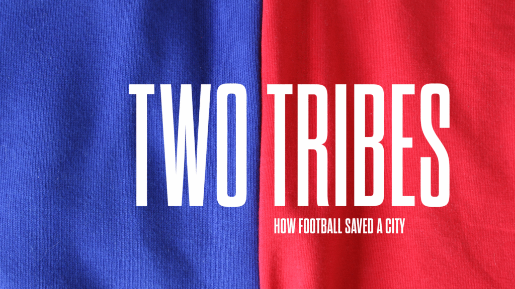 Two Tribes explora la dicotomía entre los momentos álgidos de los dos clubes de fútbol de la ciudad: Liverpool y Everton y el declive socioeconómico de Liverpool, en una ciudad en la que el fútbol y la política están tan inextricablemente unidos.